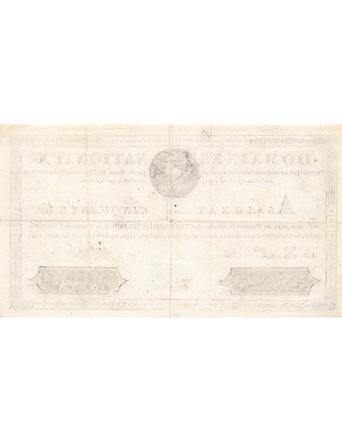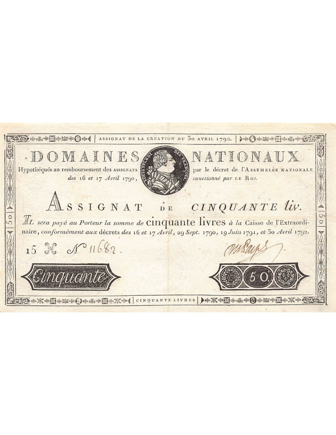 RÉVOLUTION FRANCAISE, ASSIGNAT, LOUIS XVI - 50 LIVRES - LOI DU 30/04/1792
