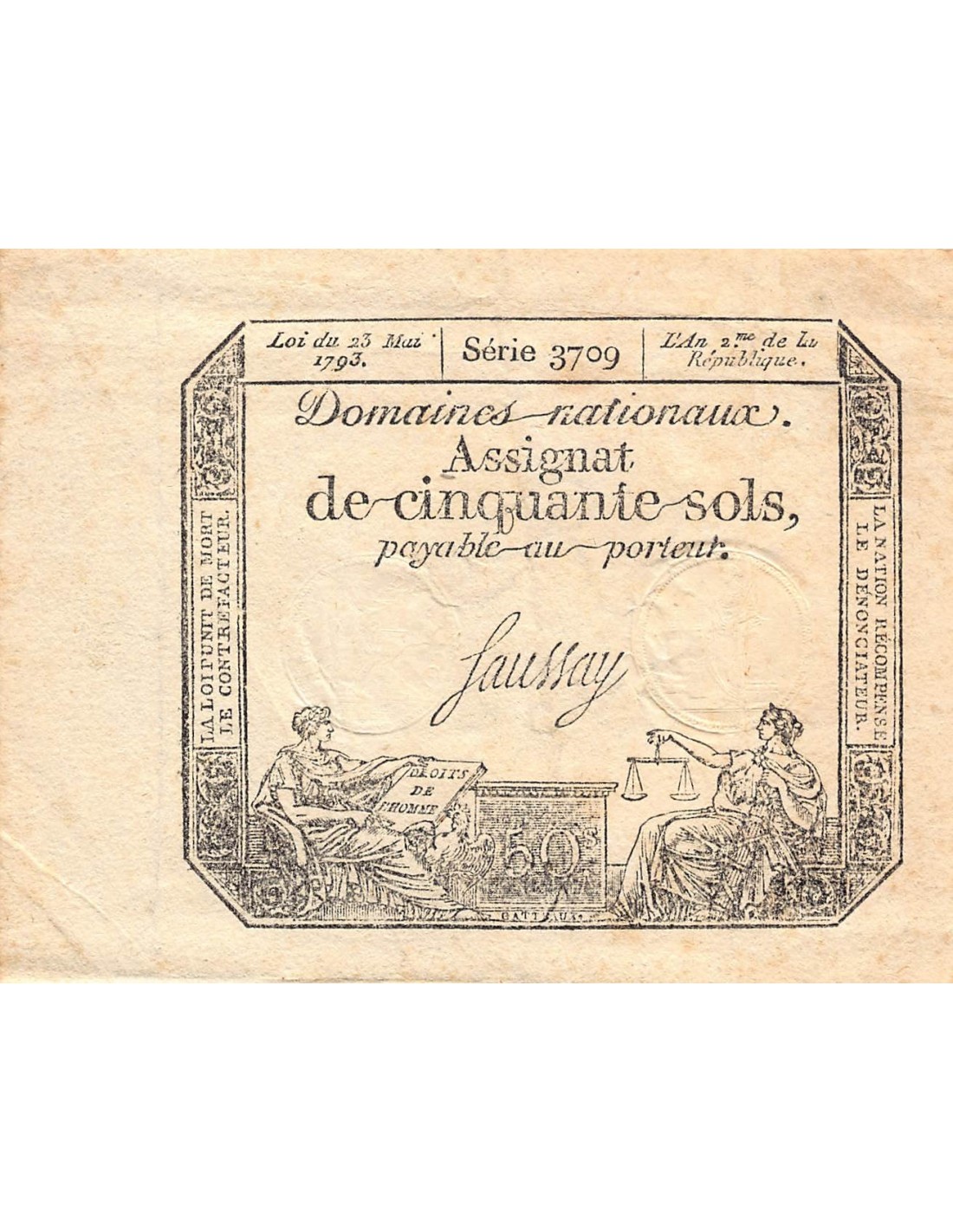 RÉVOLUTION FRANCAISE, ASSIGNAT - 50 SOLS - LOI DU 23/05/1793 - TTB