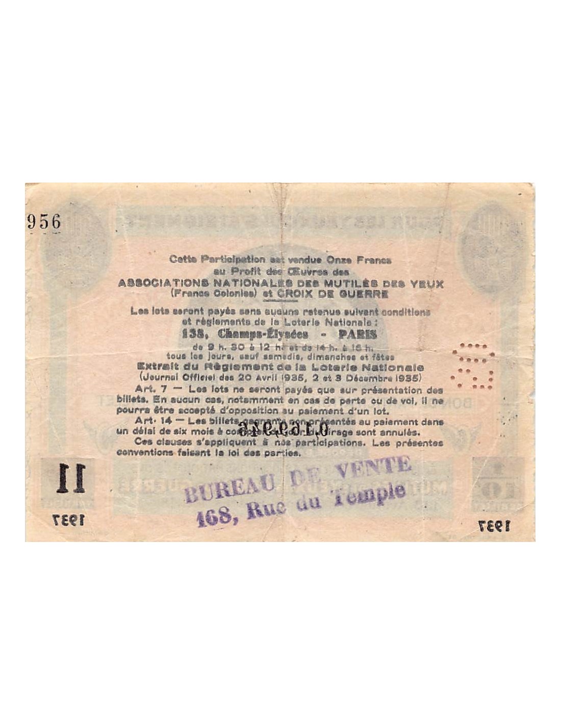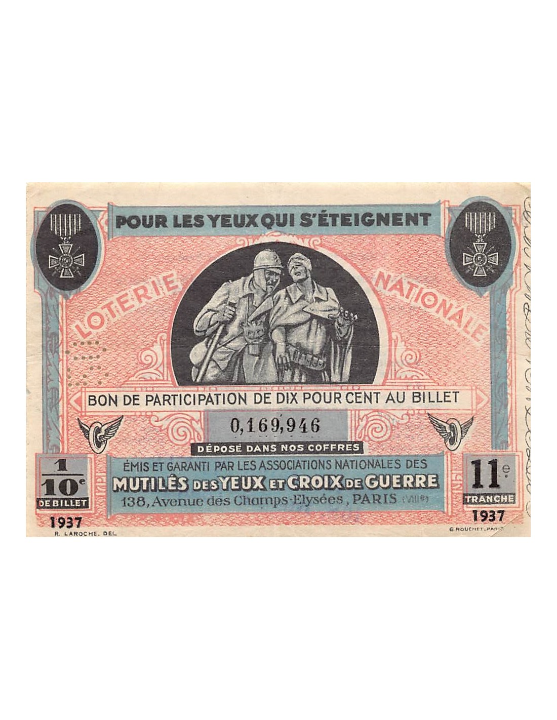Billet de Loterie Nationale, Mutilés des yeux et croix de guerre - 1937