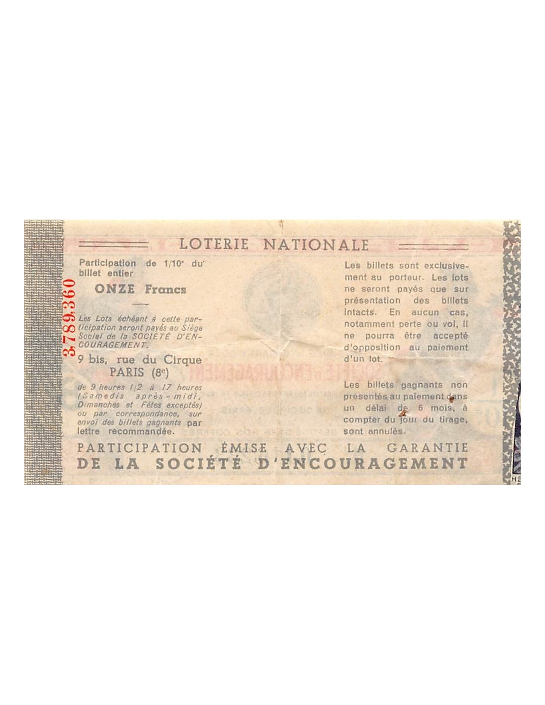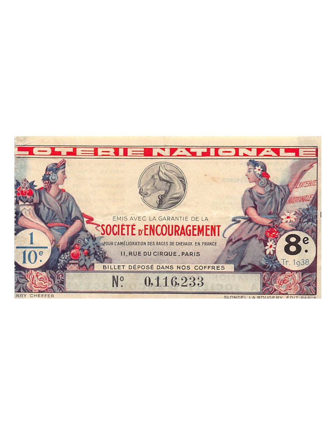 Billet de Loterie Nationale, Société d'Encouragement - 1938
