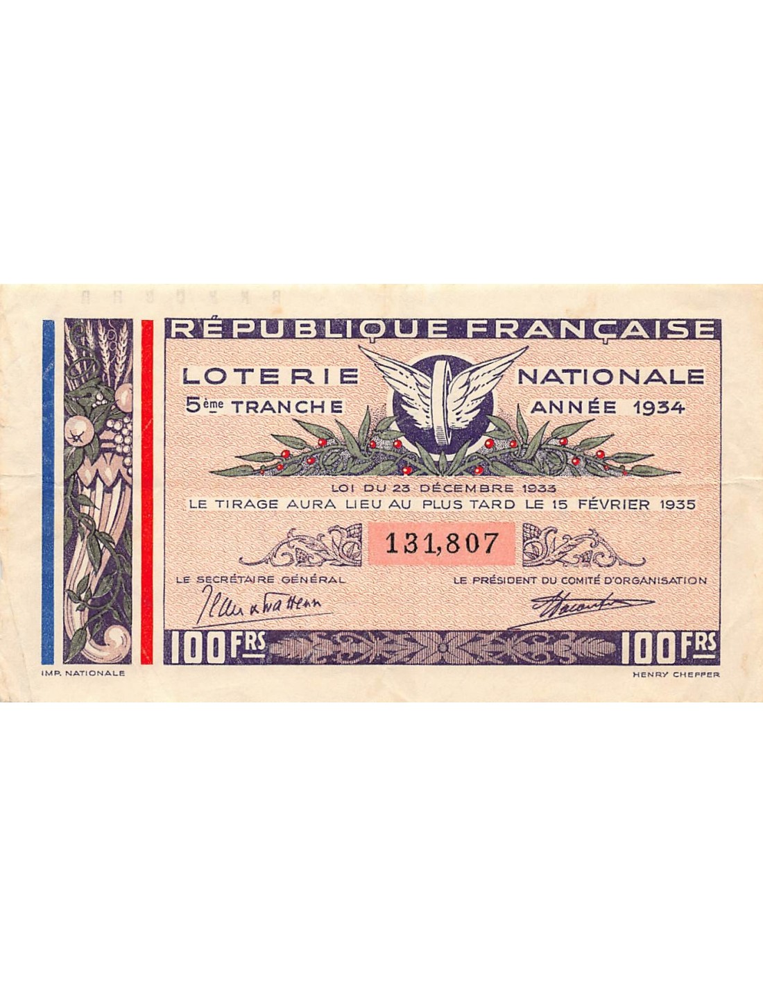 Vendu Billets de Loterie Billet de Loterie Nationale, 100 FRANCS 31 Juillet 1934 15,00 € Billet de Loterie Nationale, 100 FRANCS 31 Juillet 1934 View