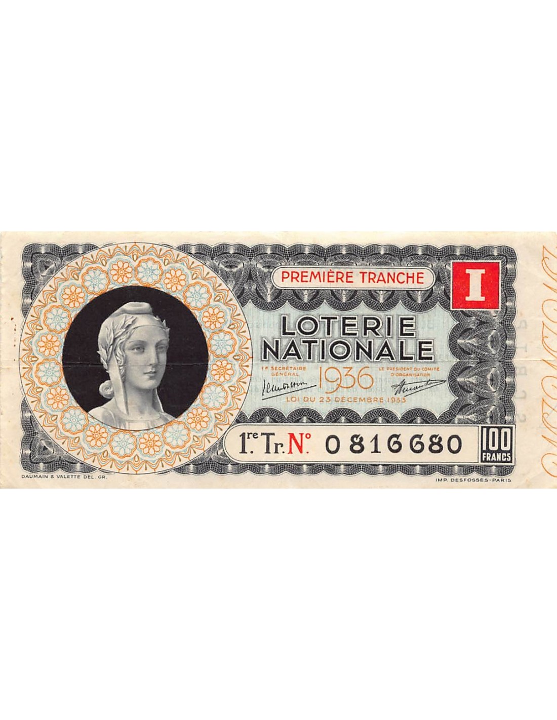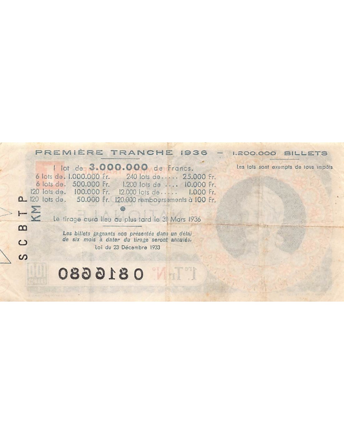 Vendu Billets de Loterie Billet de Loterie Nationale, Banque d'escompte & bourse, ALGER - 1936 10,00 € View