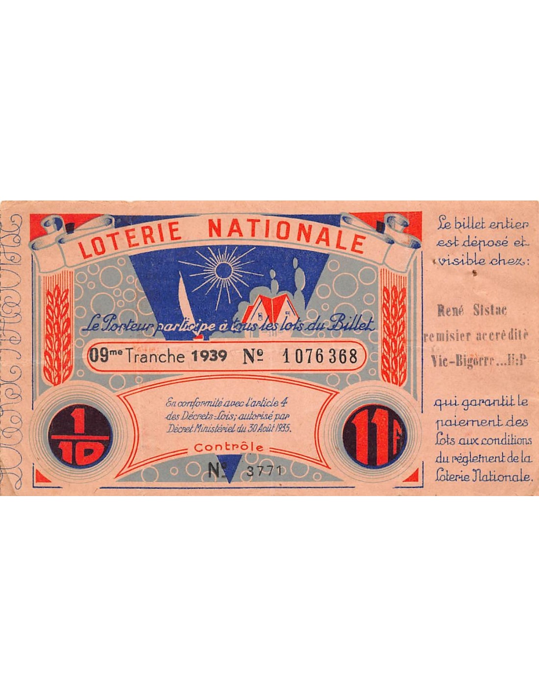 Vendu Billets de Loterie Billet de Loterie Nationale, Mutilés des Yeux - 1939 5,00 € Billet de Loterie Nationale, Mutilés des Yeux - 1939 View