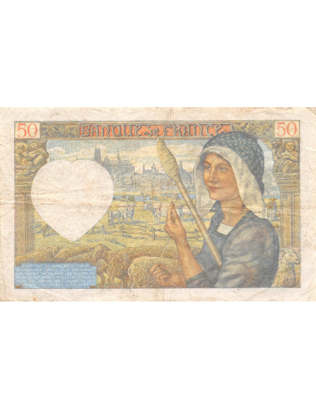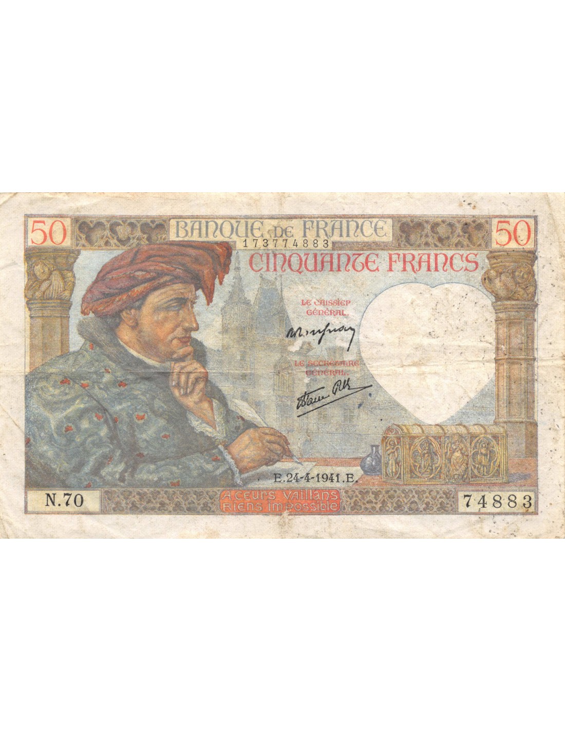FRANCE, JACQUES COEUR - 50 FRANCS 24/04/1941 - SÉRIE N.70