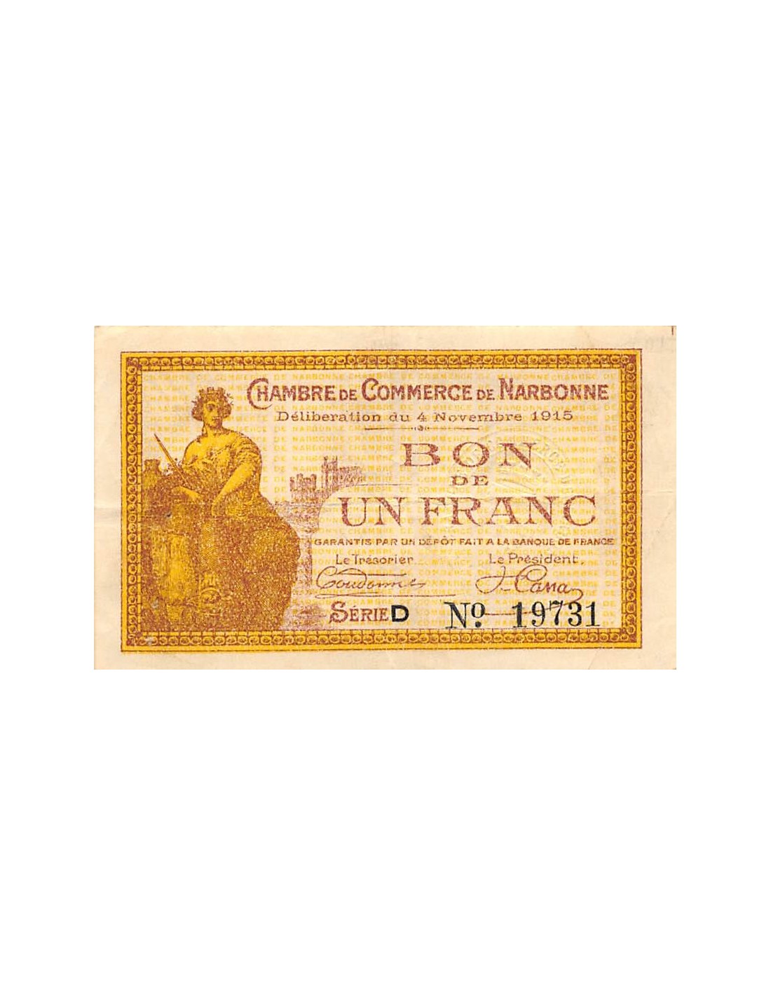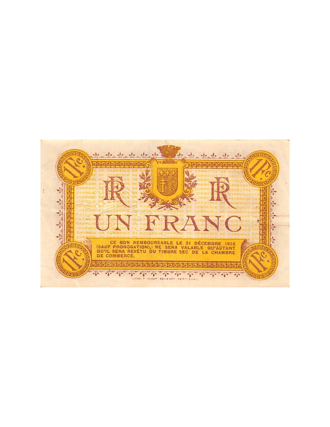 CHAMBRE DE COMMERCE DE NARBONNE - 1 FRANC 1915 - SÉRIE D