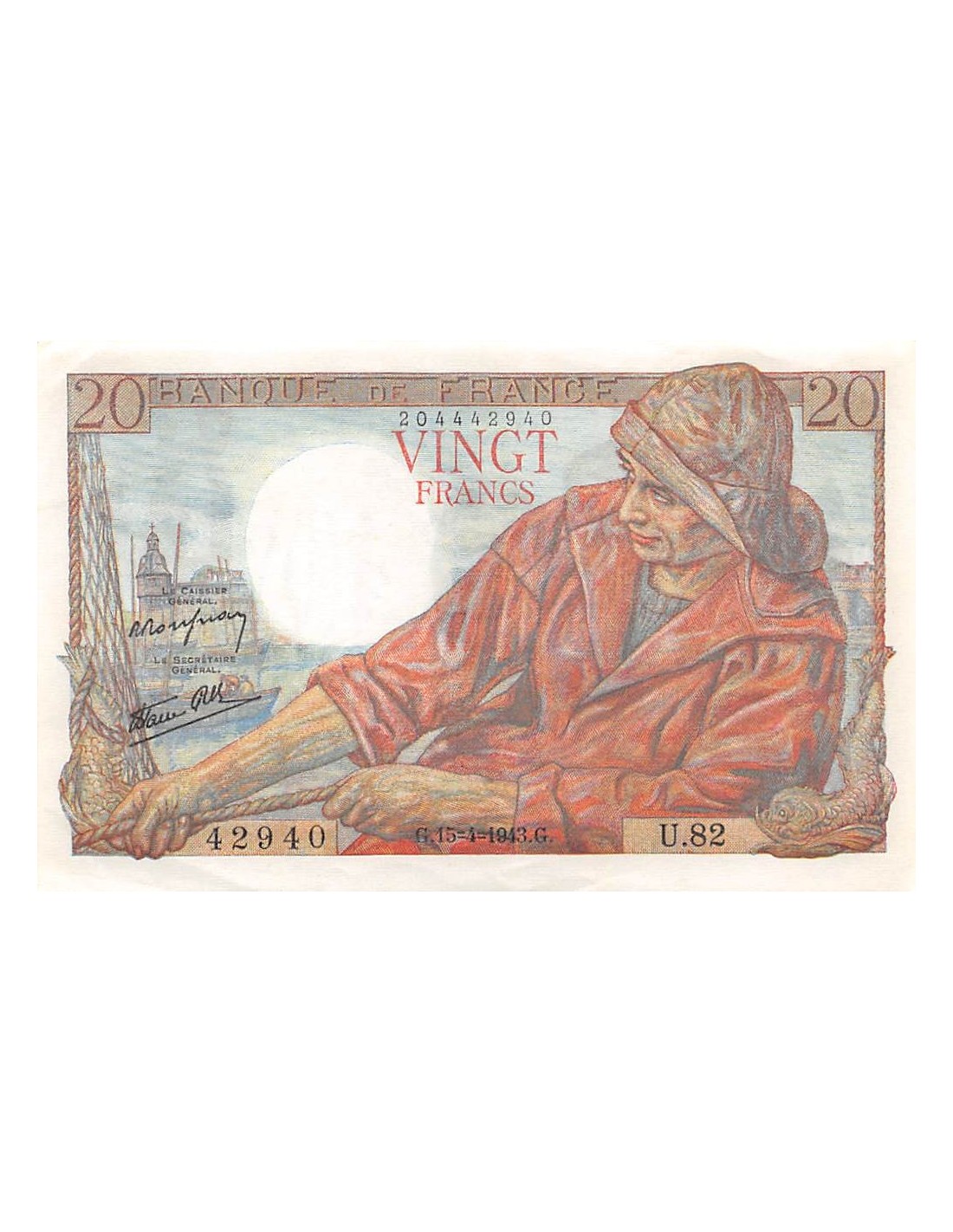 FRANCE - 20 FRANCS PÊCHEUR 15/04/1943 - SÉRIE U.82