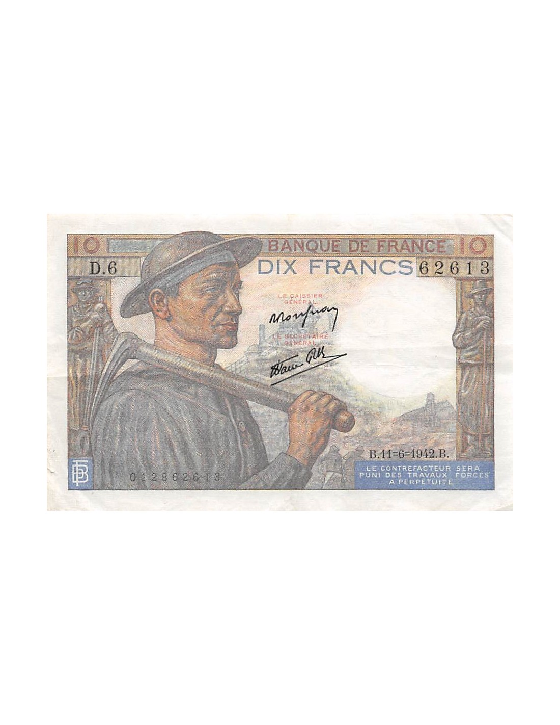 FRANCE - 10 FRANCS MINEUR 11/06/1942 - SÉRIE D.6