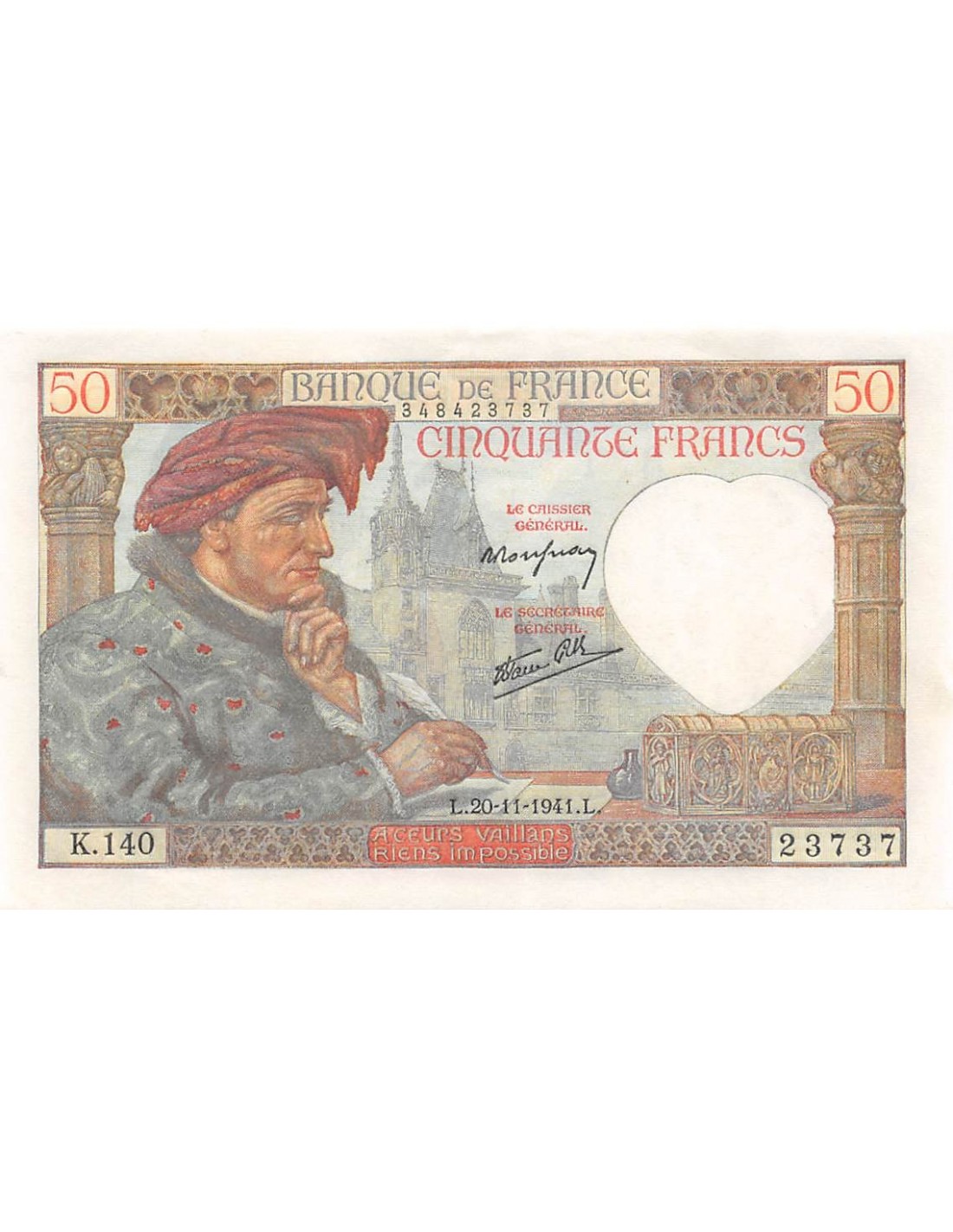 FRANCE, JACQUES COEUR - 50 FRANCS 20/11/1941 - SÉRIE K.140