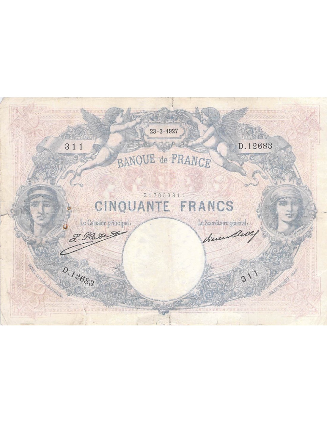 FRANCE - 50 FRANCS BLEU ET ROSE 23/03/1927 - SÉRIE D.12683