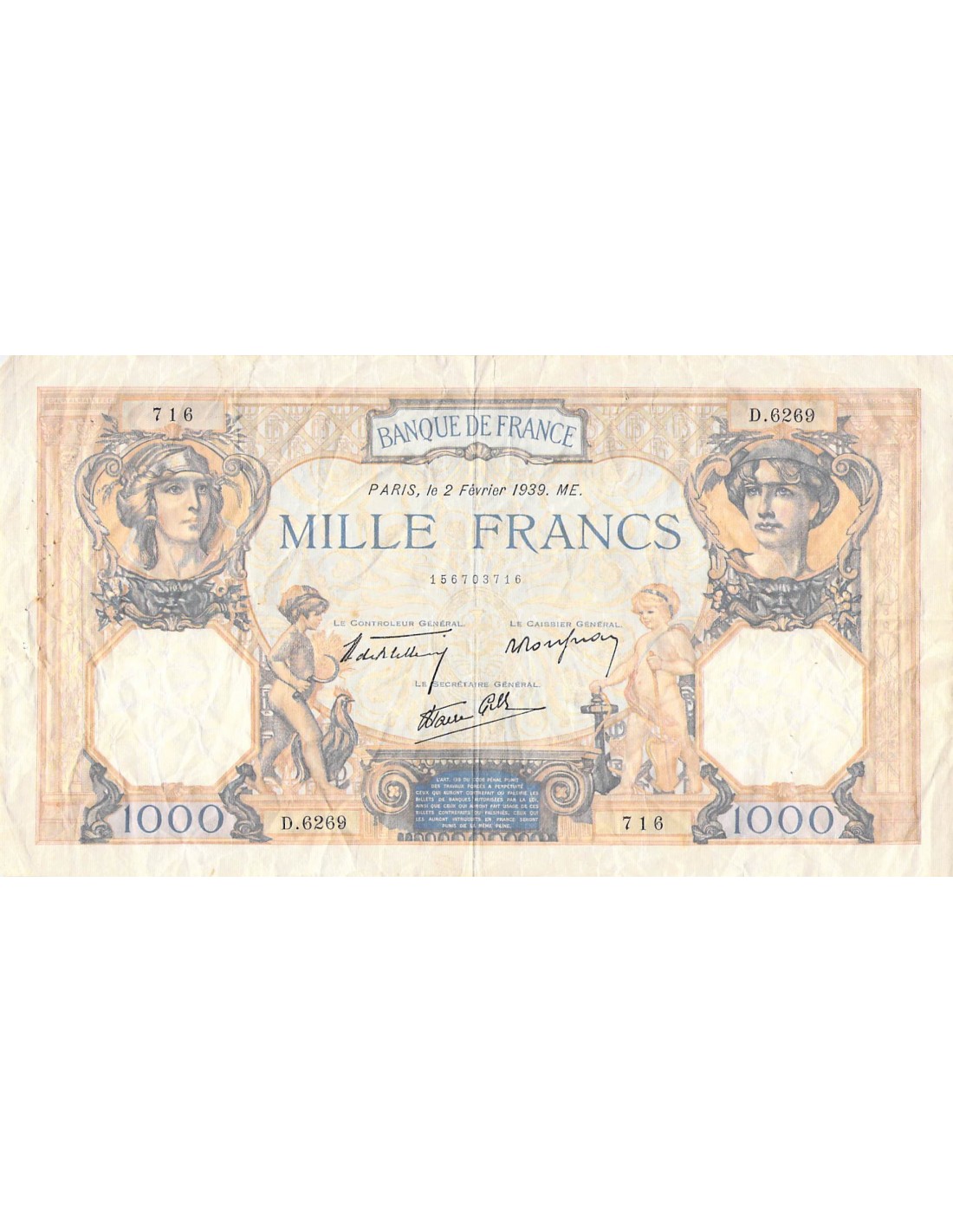 FRANCE, CÉRÈS ET MERCURE - 1000 FRANCS 02/02/1939 - SÉRIE D.6269