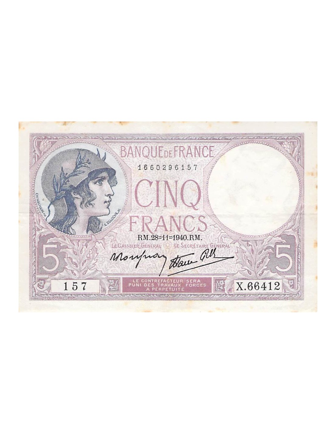 FRANCE - 5 FRANCS VIOLET 28/11/1940 - TTB