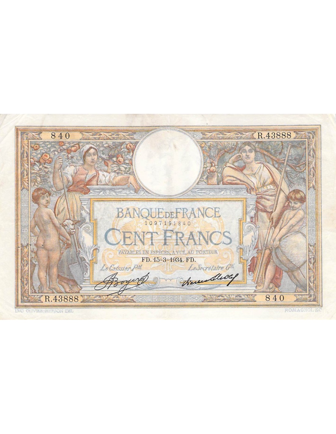 FRANCE, LUC-OLIVIER MERSON - 100 FRANCS 15/03/1934 - TTB