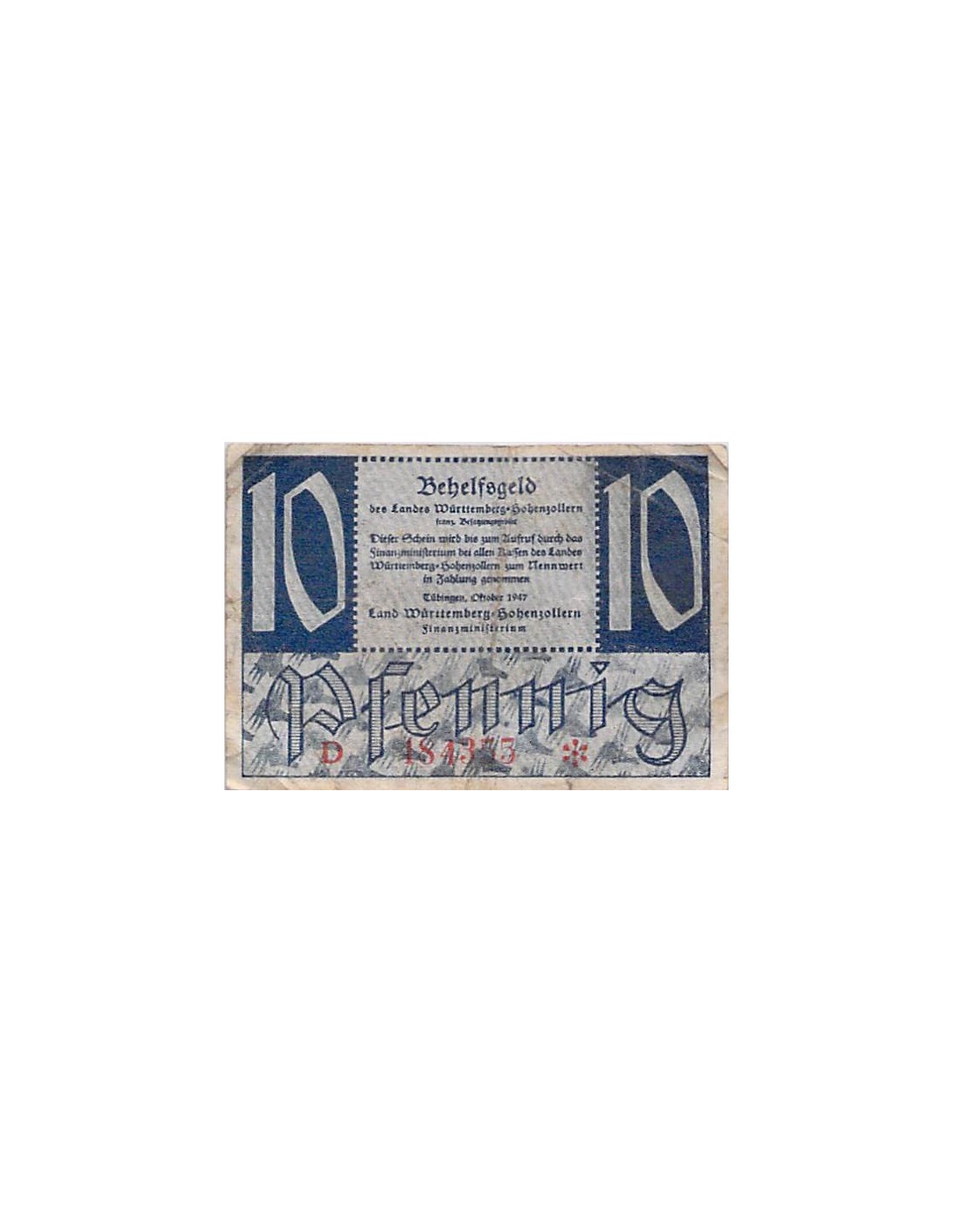ALLEMAGNE, WURTEMBERG-HOHENZOLLERN - 10 PFENNIG 1947 TÜBINGEN