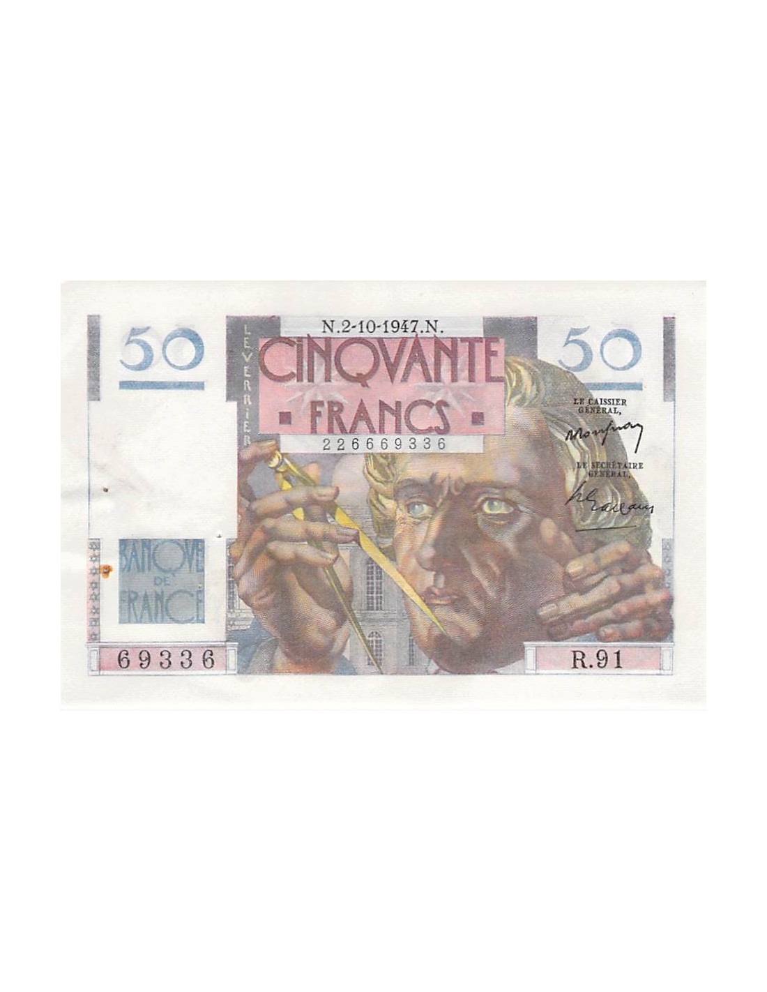 FRANCE - 50 FRANCS LE VERRIER 02/10/1947 - SÉRIE P.91 - PSUP
