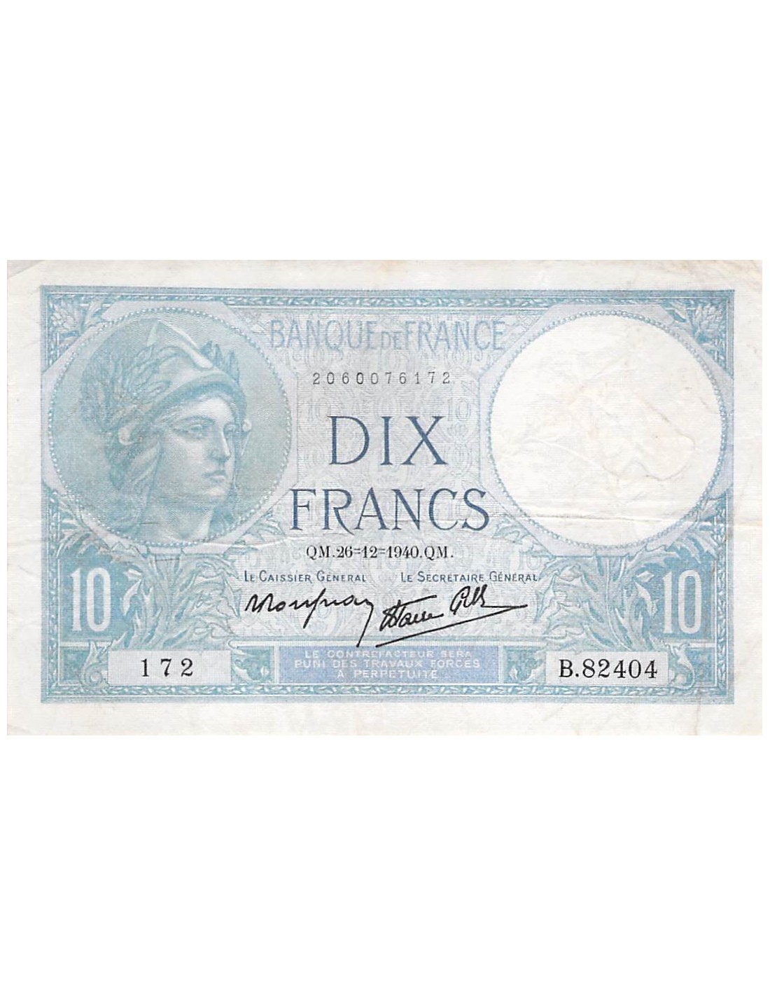 FRANCE - 10 FRANCS MINERVE 26/12/1940 - TB+