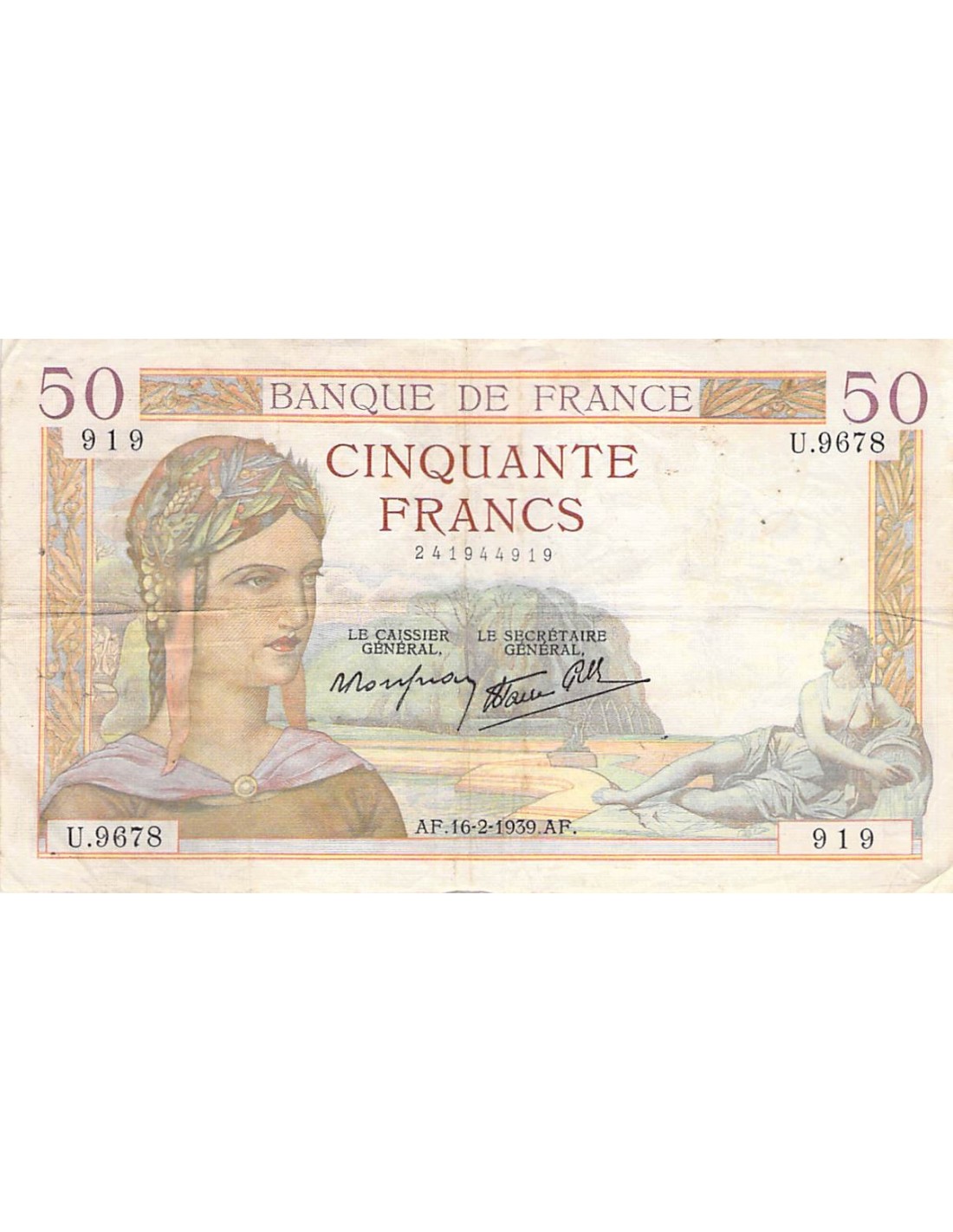 FRANCE - 50 FRANCS CERES 16/02/1939 - TB+