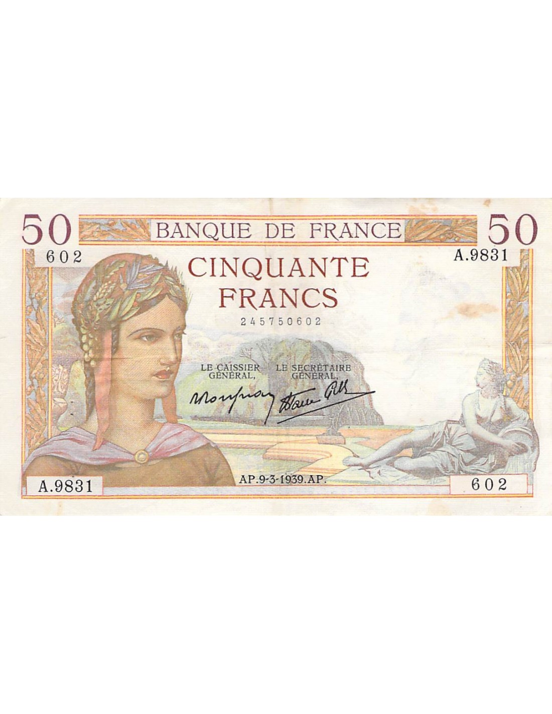 FRANCE - 50 FRANCS CERES 09/03/1939 - TTB