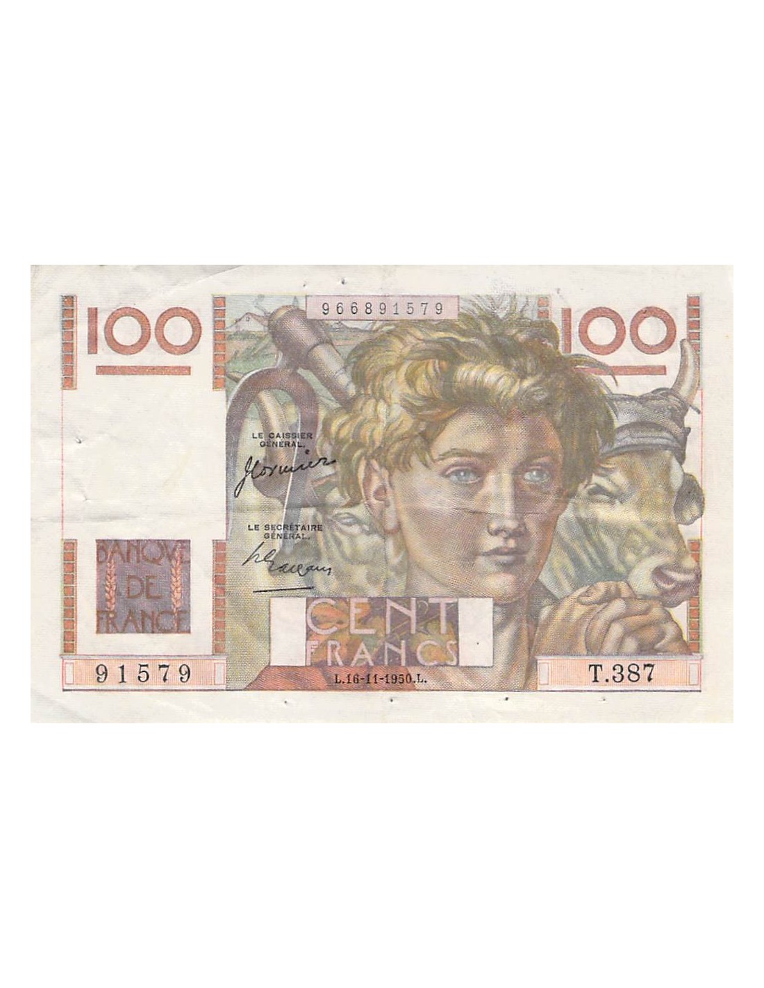 FRANCE, JEUNE PAYSAN - 100 FRANCS 16/11/1950 - SÉRIE T.387 - TB+