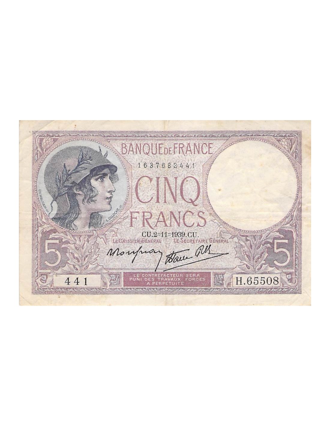 FRANCE - 5 FRANCS VIOLET 02/11/1939 - TB+