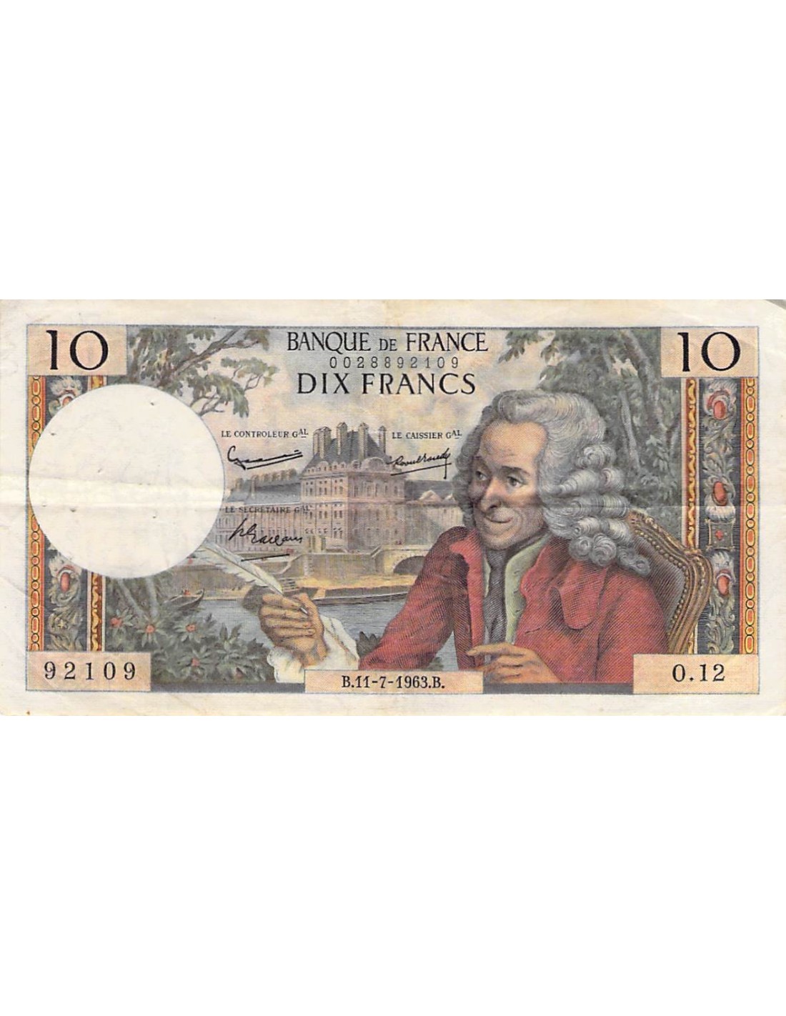 FRANCE, VOLTAIRE - 10 FRANCS 11/07/1963 - SÉRIE O.12 - TB+