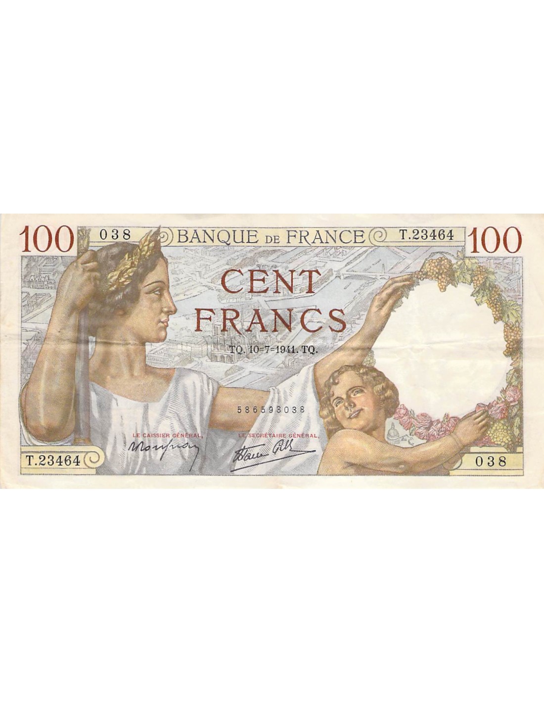 FRANCE, SULLY - 100 FRANCS 10/07/1941 - SÉRIE T.23464 - TTB