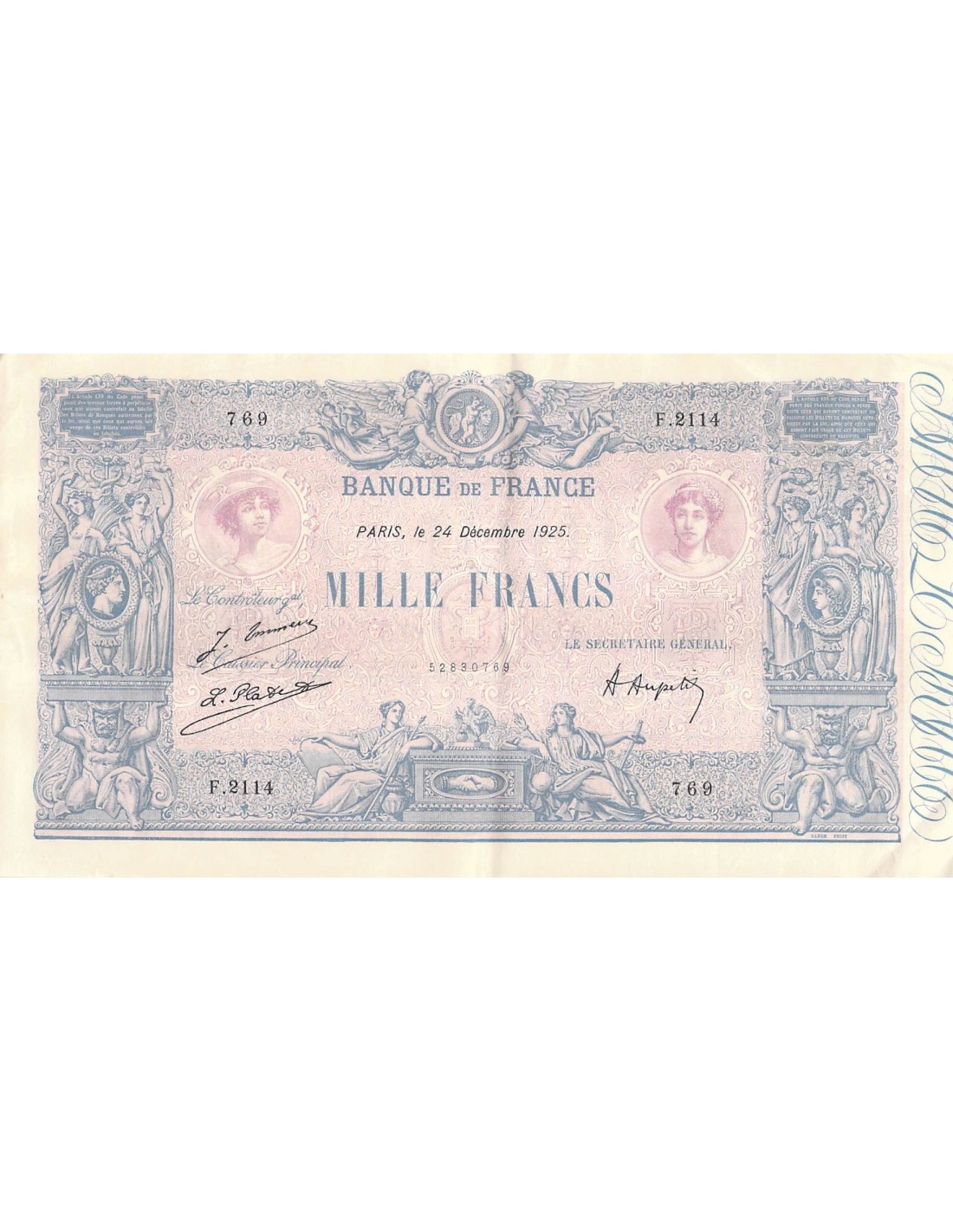 FRANCE - 1000 FRANCS BLEU ET ROSE 24/12/1925 - SERIE F.2114 - TTB+