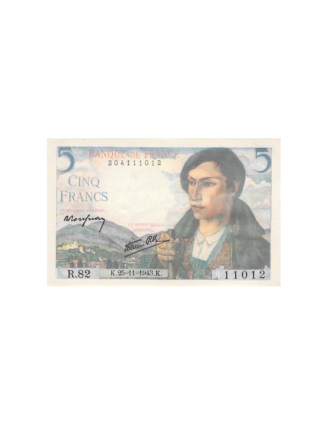 FRANCE - 5 FRANCS BERGER 22/11/1943 - SÉRIE R.82 - SUP+