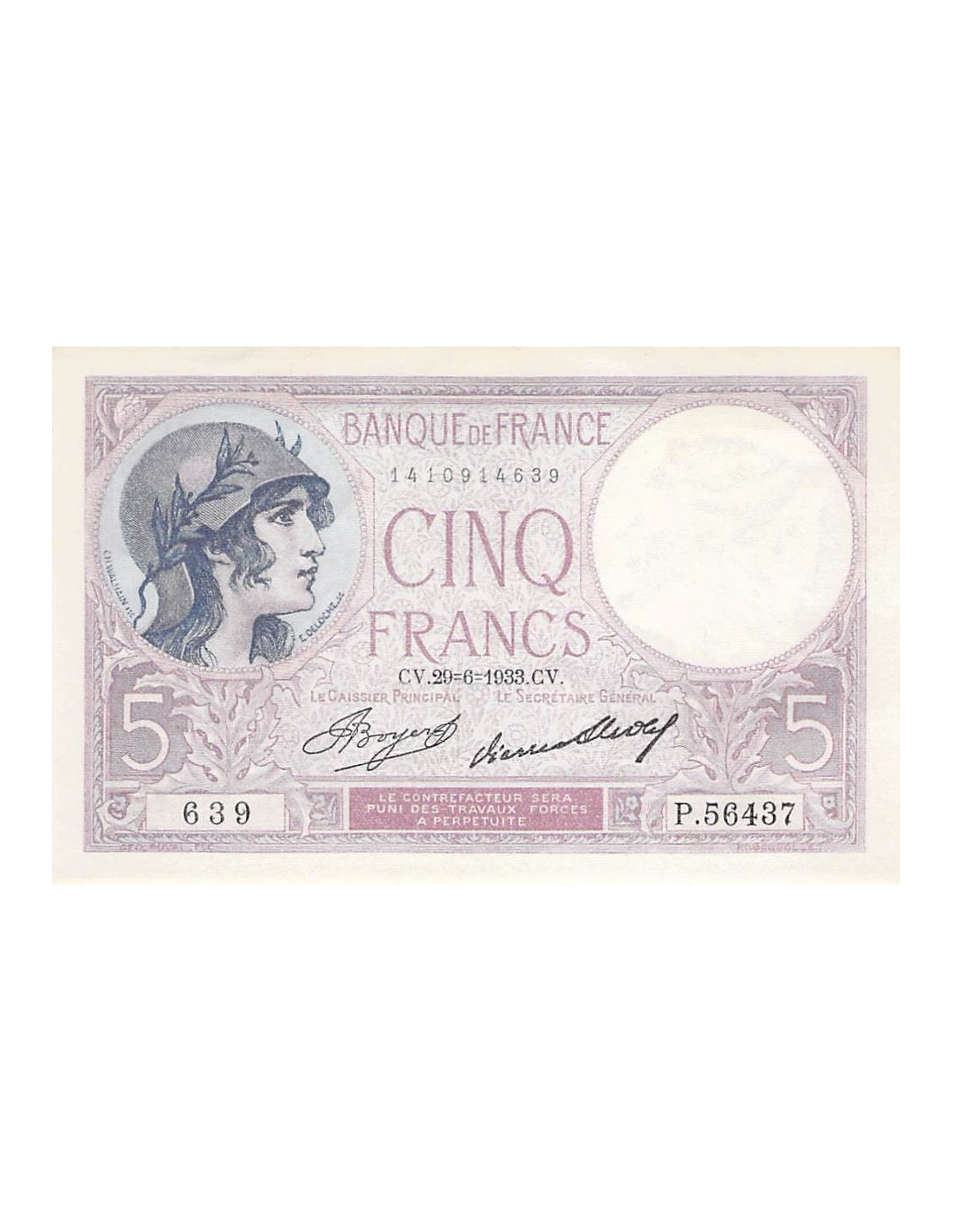 FRANCE - 5 FRANCS VIOLET 29/06/1933 - SPL