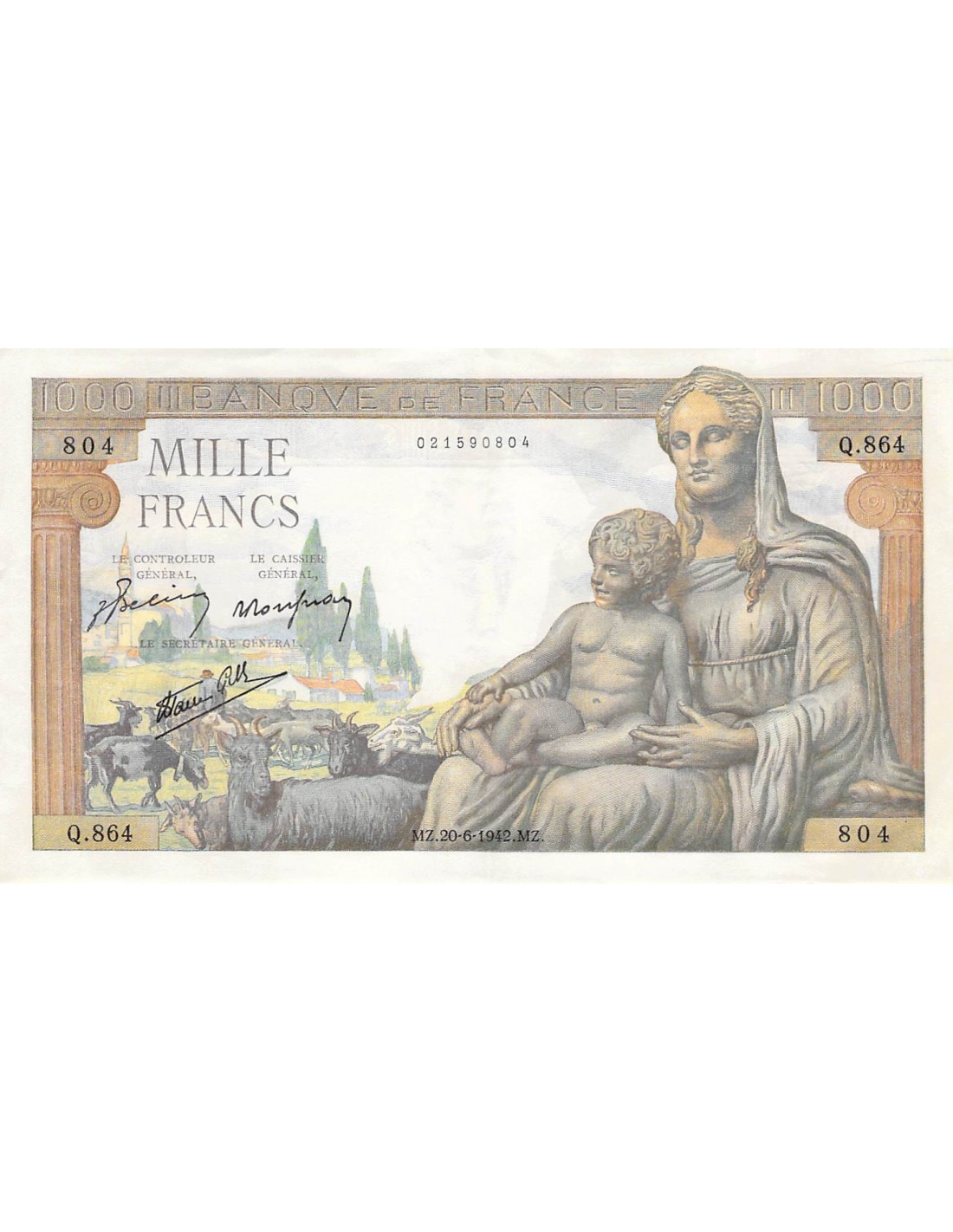 FRANCE, DEMETER - 1000 FRANCS 20/06/1942 - SUP