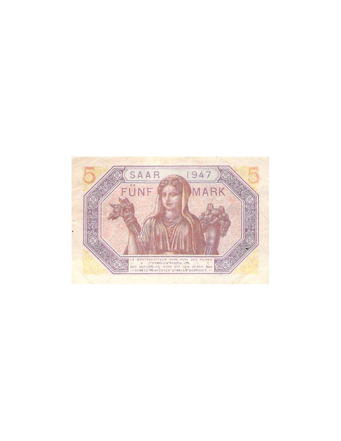 SARRE, OCCUPATION FRANÇAISE - 5 MARK 1947 - TTB