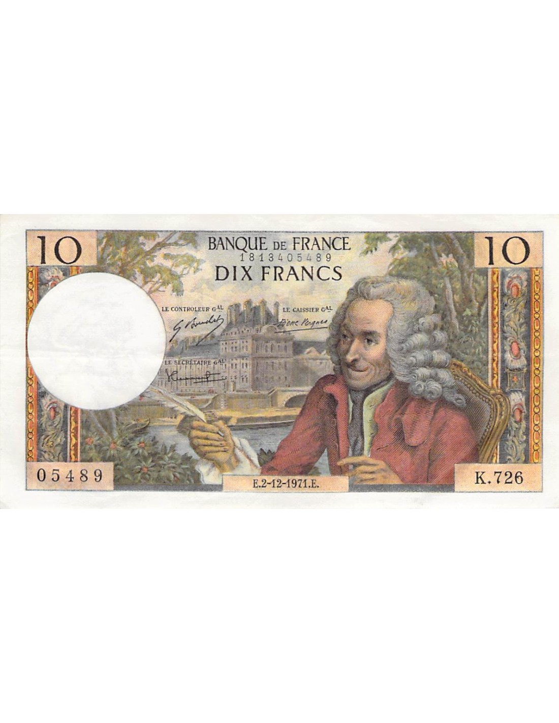 FRANCE, VOLTAIRE - 10 FRANCS 02/12/1971 - SÉRIE K.726 - PSUP