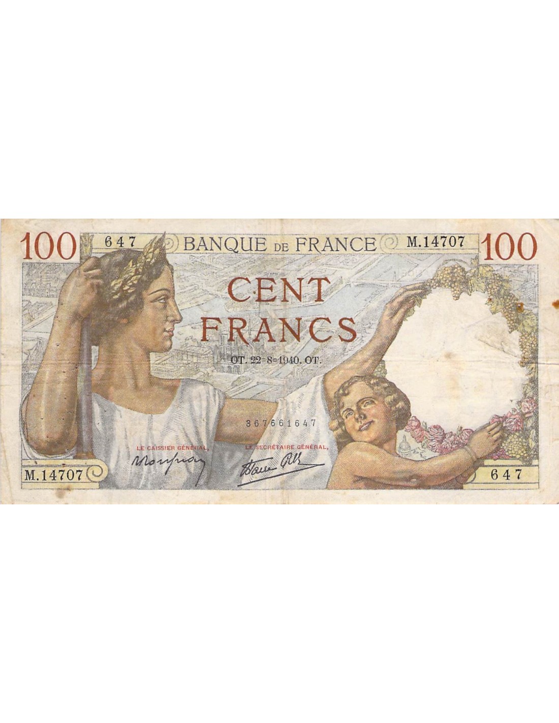 FRANCE, SULLY - 100 FRANCS 22/08/1941 - SÉRIE M.14707 - TB+
