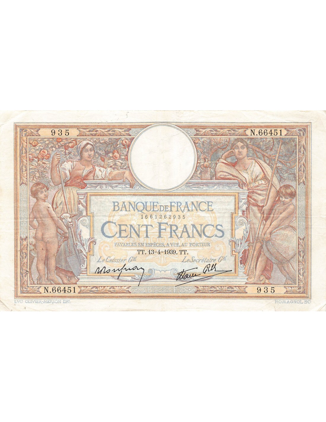FRANCE, LUC-OLIVIER MERSON - 100 FRANCS 13/04/1939 - TTB