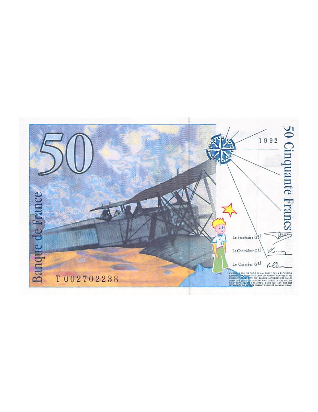 FRANCE, SAINT-EXUPERY - 50 FRANCS 1992 - NEUF