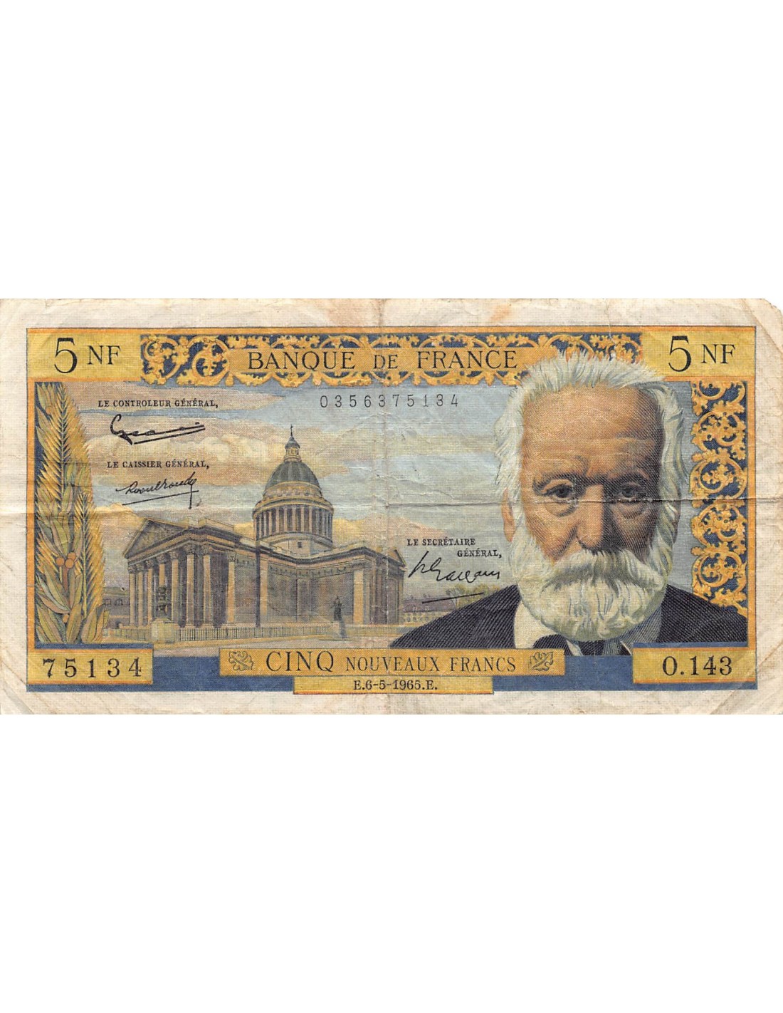 FRANCE, VICTOR HUGO - 5 NF 06/05/1965 - SÉRIE O.143 - B+