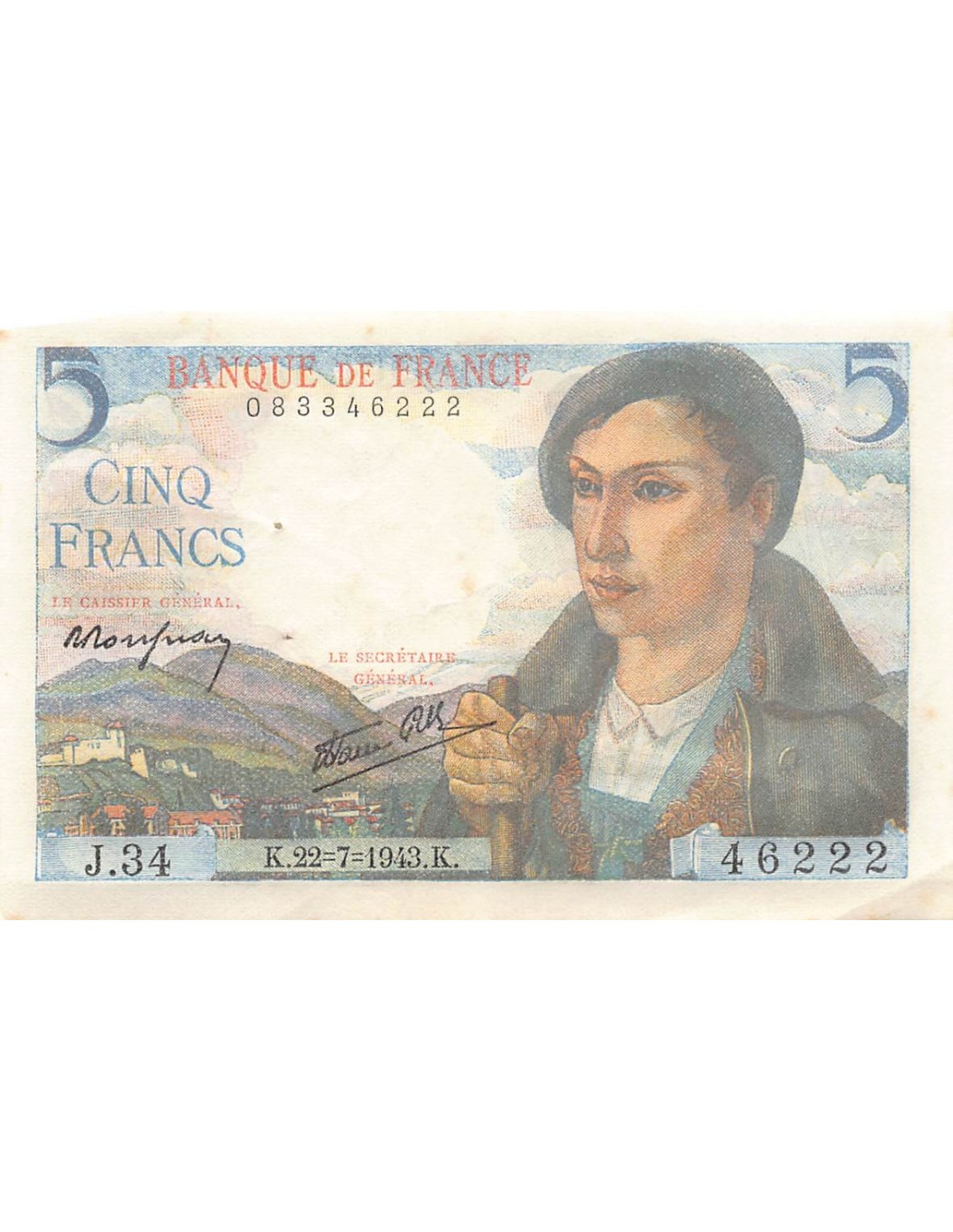FRANCE, BERGER - 5 FRANCS 22/07/1943 - SÉRIE J.34 - TTB+