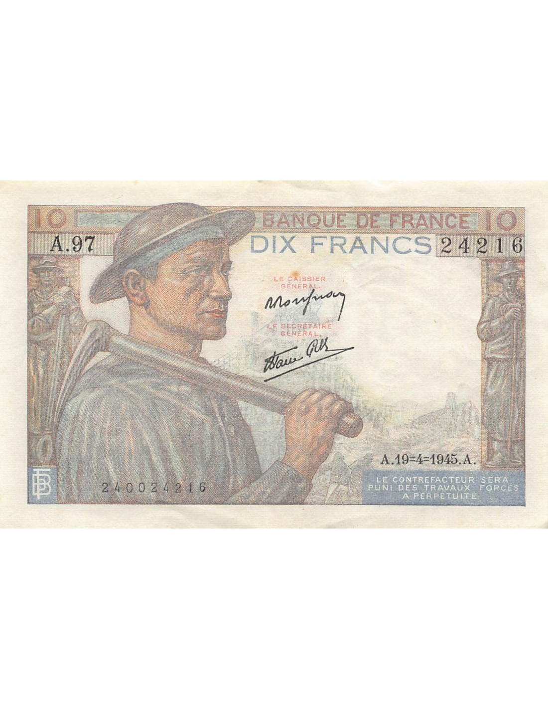 FRANCE, MINEUR - 10 FRANCS 19/04/1945 - SERIE A.97 - TTB+