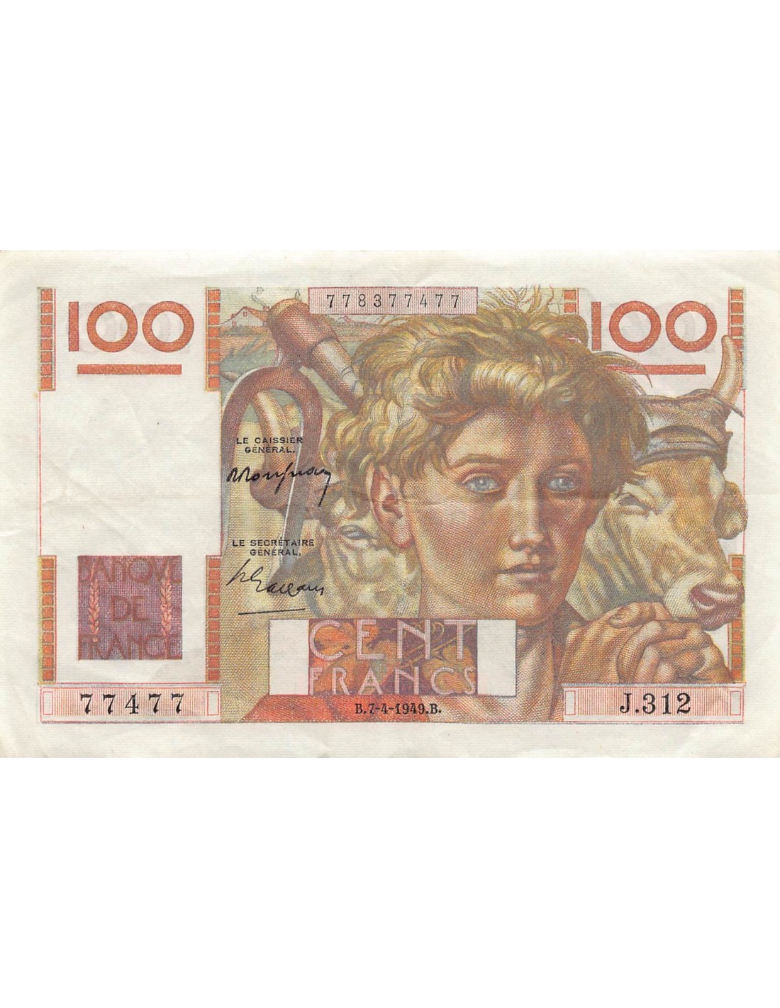 FRANCE, JEUNE PAYSAN - 100 FRANCS 07/04/1949 - SÉRIE J.312 - TTB+