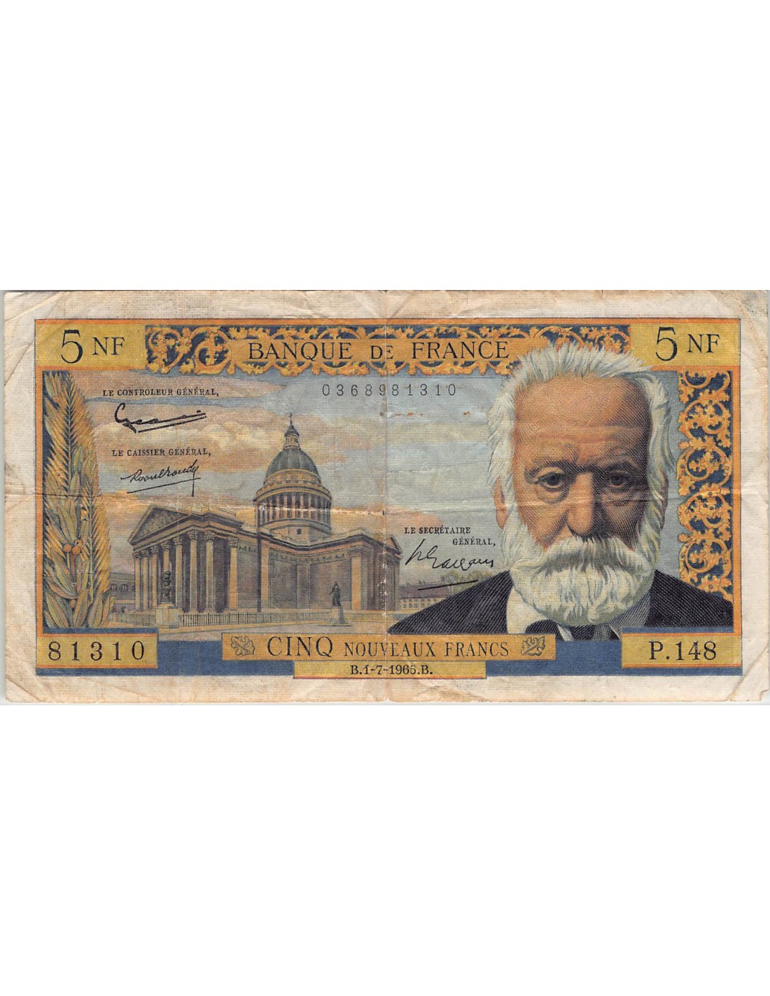 FRANCE, VICTOR HUGO - 5 NF 01/07/1965 - SÉRIE P.148 - TB