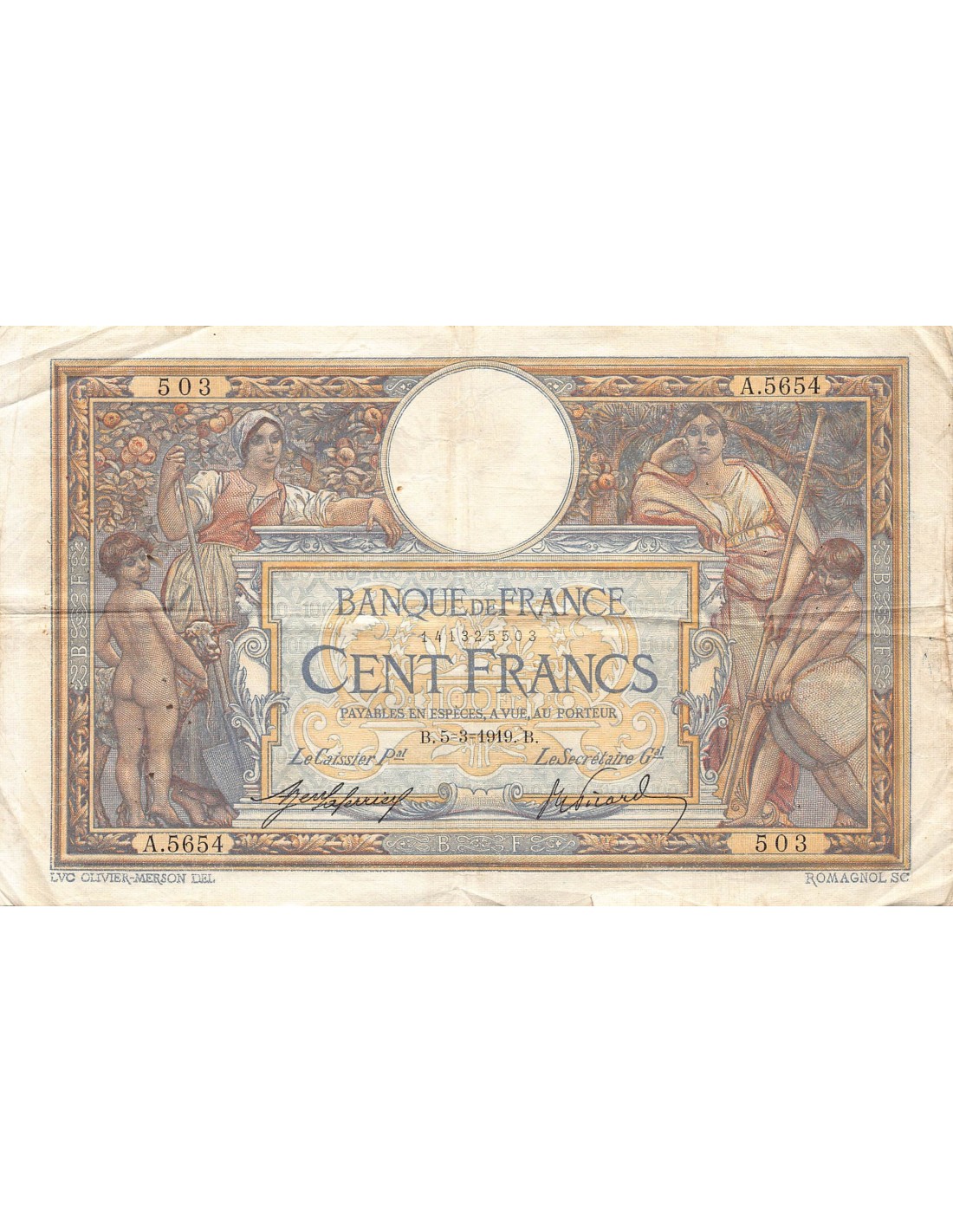FRANCE, LUC-OLIVIER MERSON - 100 FRANCS 05/03/1919 - TB+