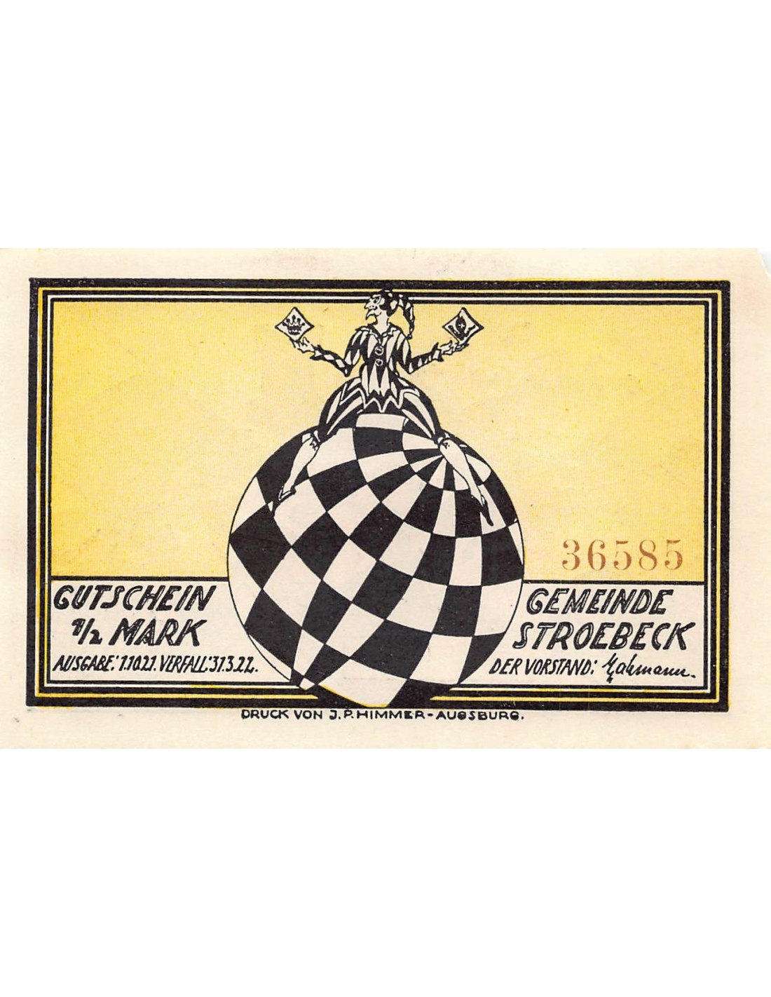 ALLEMAGNE, STROEBECK GEMEINDE - 1/2 MARK 1922