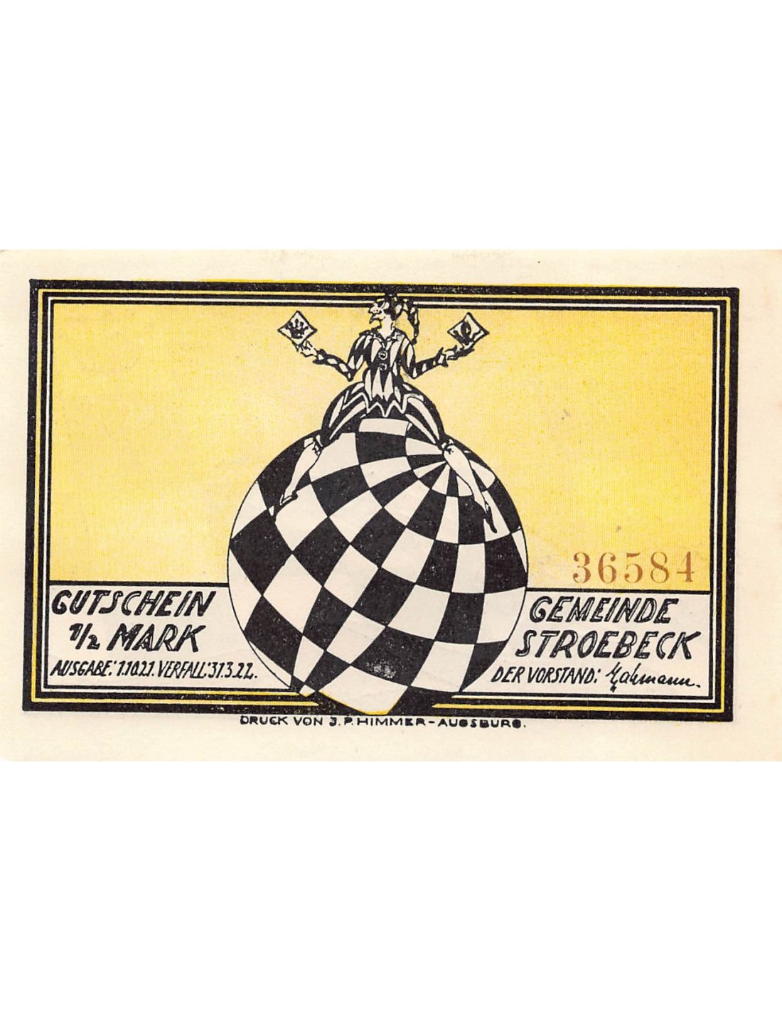 ALLEMAGNE, STROEBECK GEMEINDE - 1/2 MARK 1922
