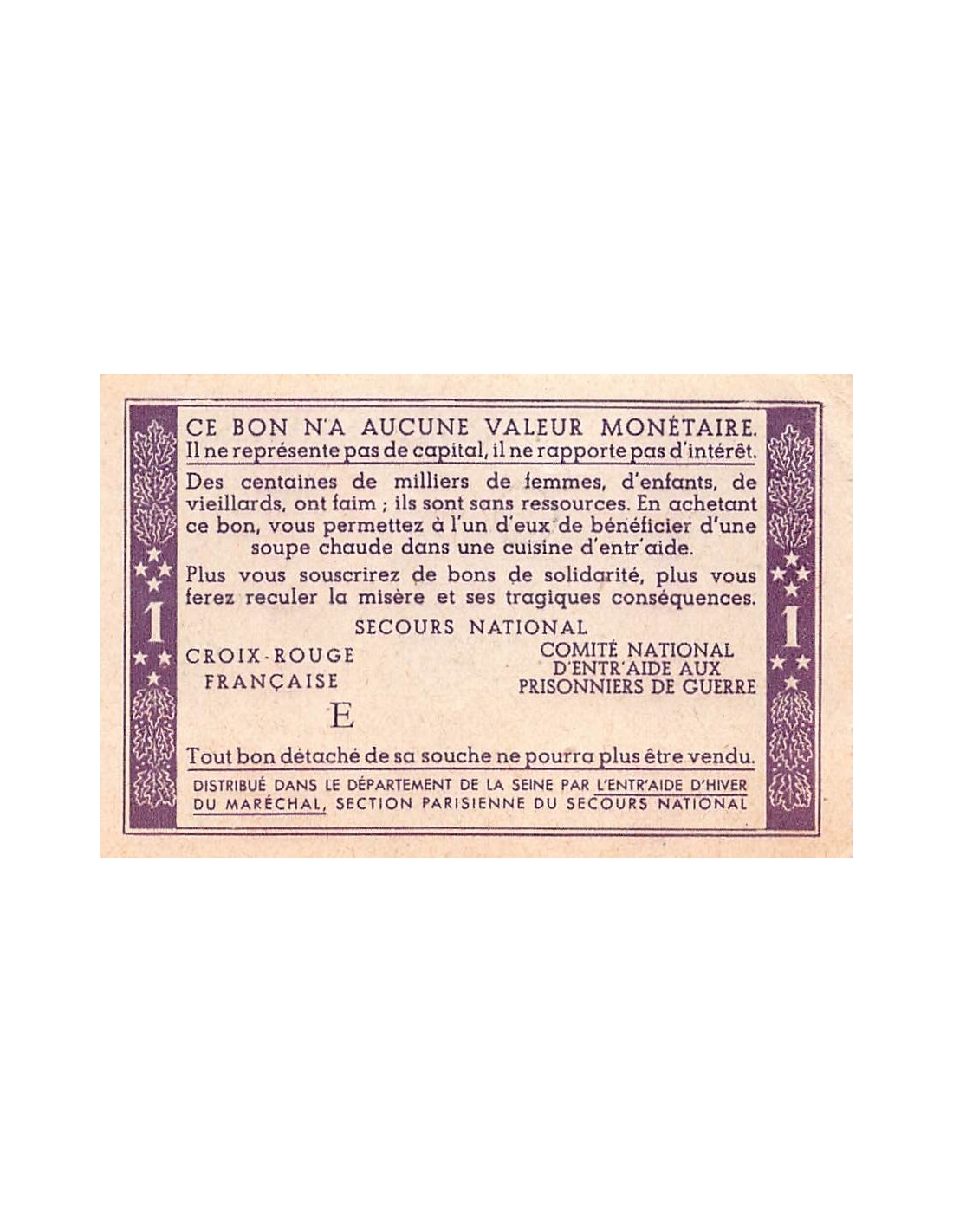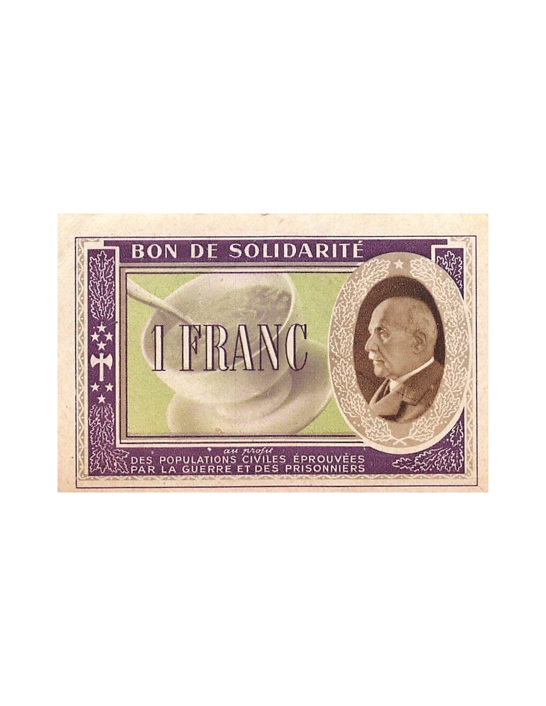 ETAT FRANCAIS, MARECHAL PETAIN - BON DE SOLIDARITE 1 FRANC 1941 - SUP