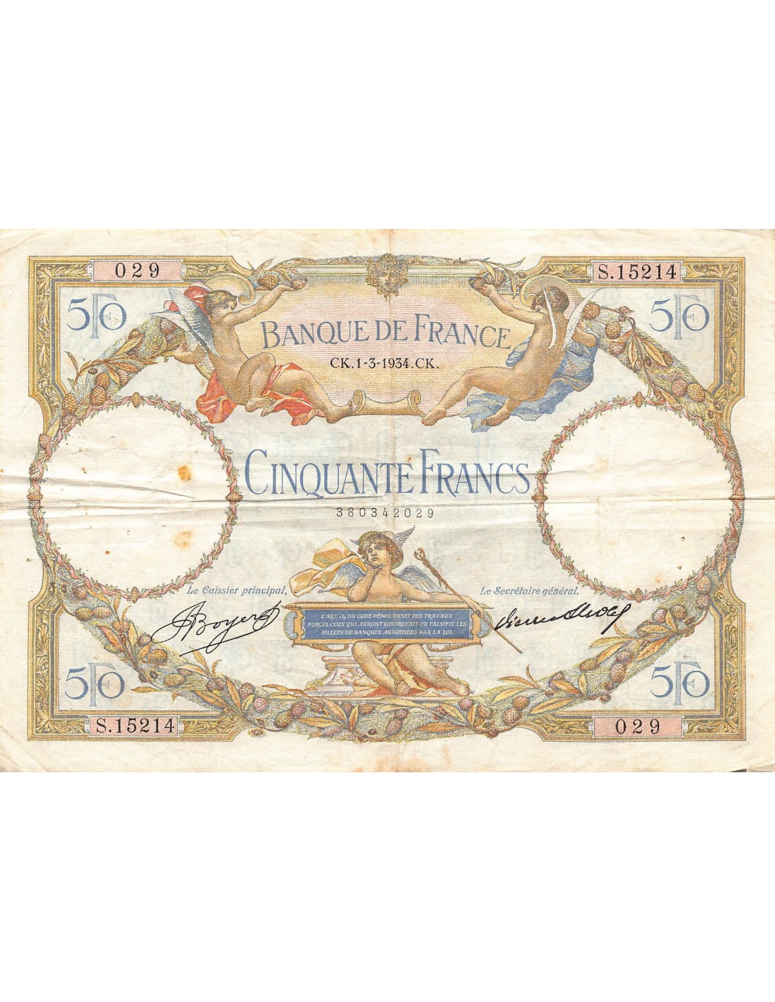 FRANCE, LUC-OLIVIER MERSON - 50 FRANCS 01/03/1934 - TB+