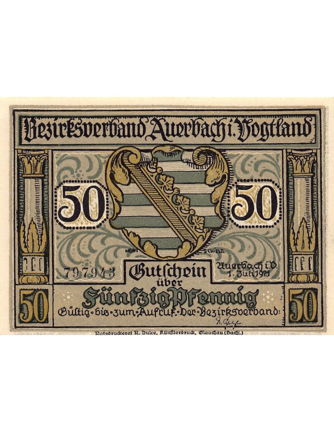 ALLEMAGNE, Auerbach/Vogtland - 50 PFENNIG 1921