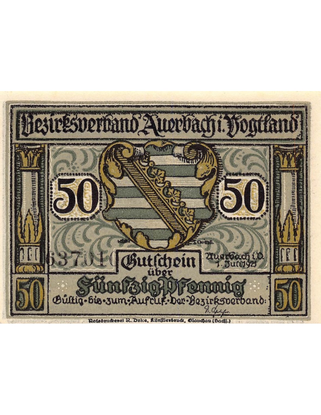 ALLEMAGNE, Auerbach/Vogtland - 50 PFENNIG 1921