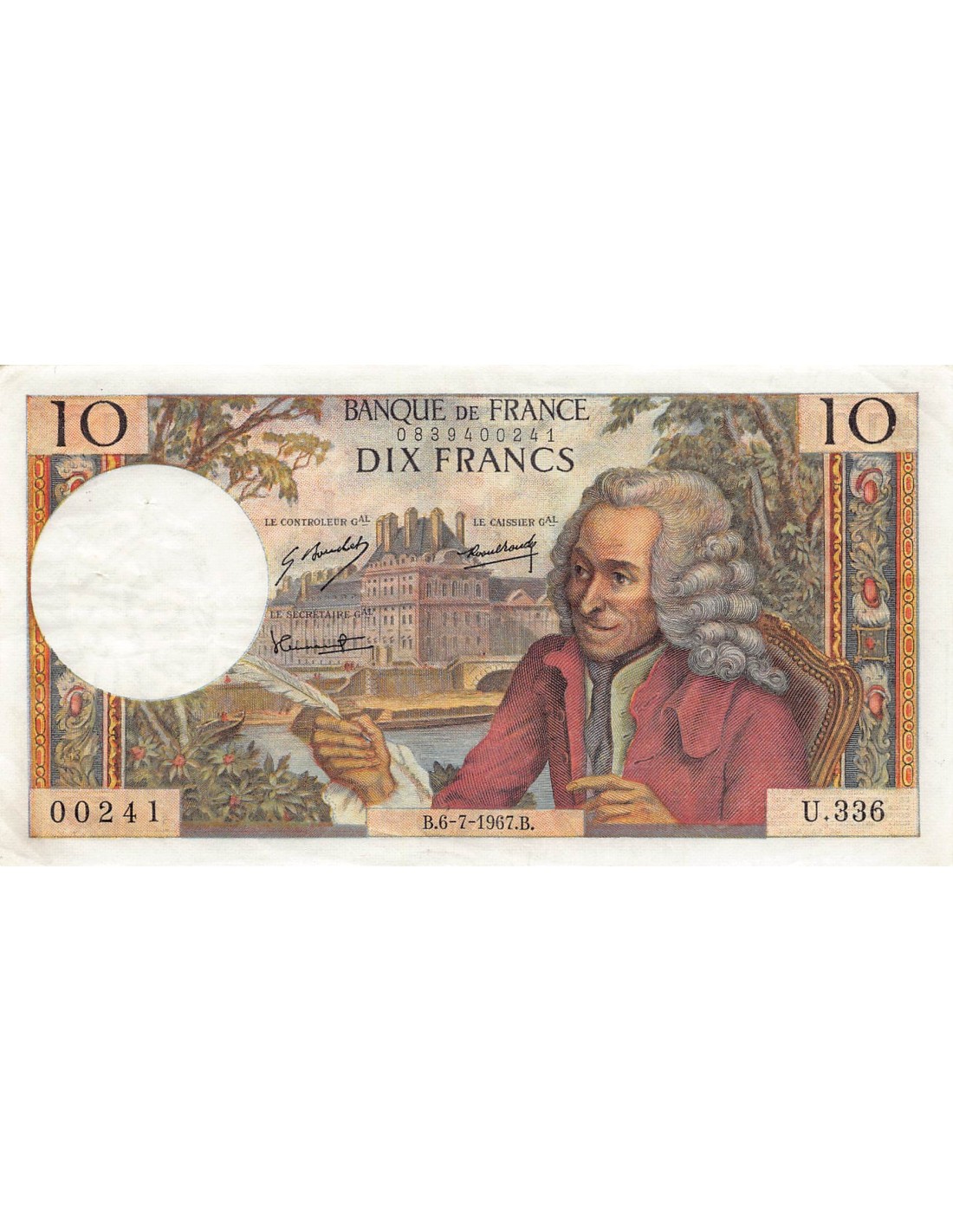 FRANCE, VOLTAIRE - 10 FRANCS 06/07/1967 - SÉRIE U.336 - TTB+