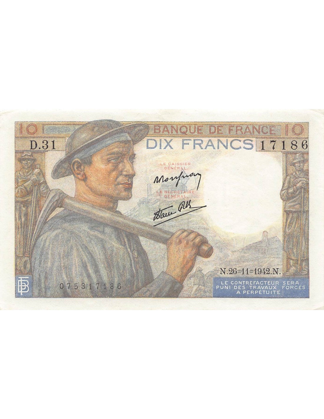 FRANCE, MINEUR - 10 FRANCS 26/11/1942 - SÉRIE D.31 - PSUP