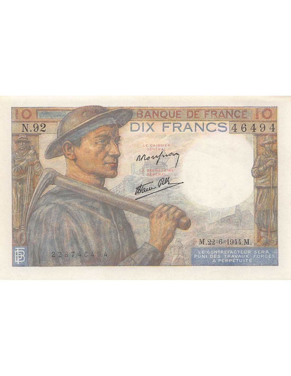 FRANCE, MINEUR - 10 FRANCS 22/06/1944 - SÉRIE N.92 - SUP+