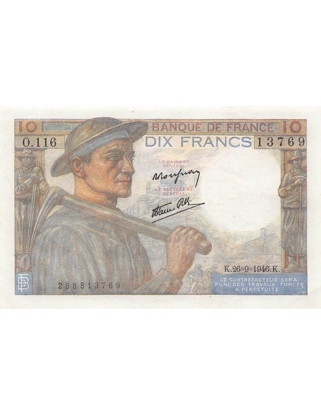 FRANCE, MINEUR - 10 FRANCS 26/09/1946 - SÉRIE O.116 - PSUP